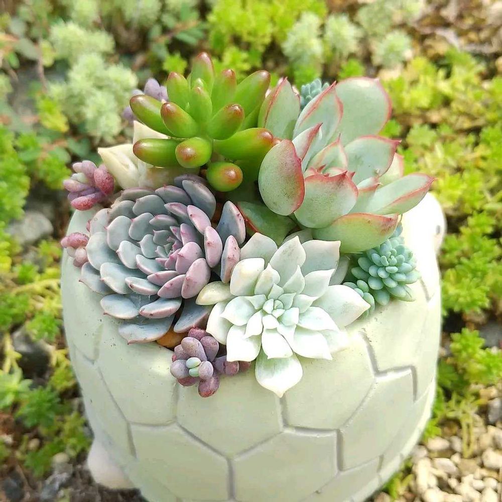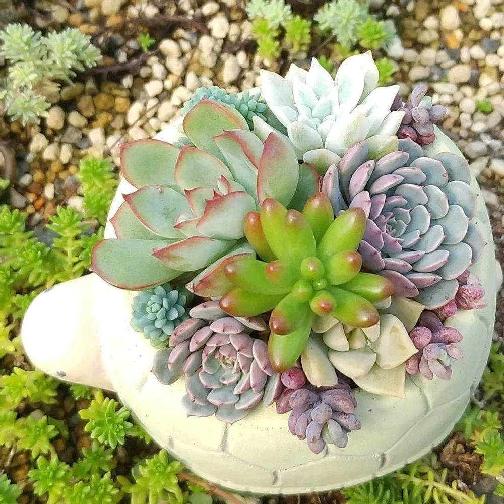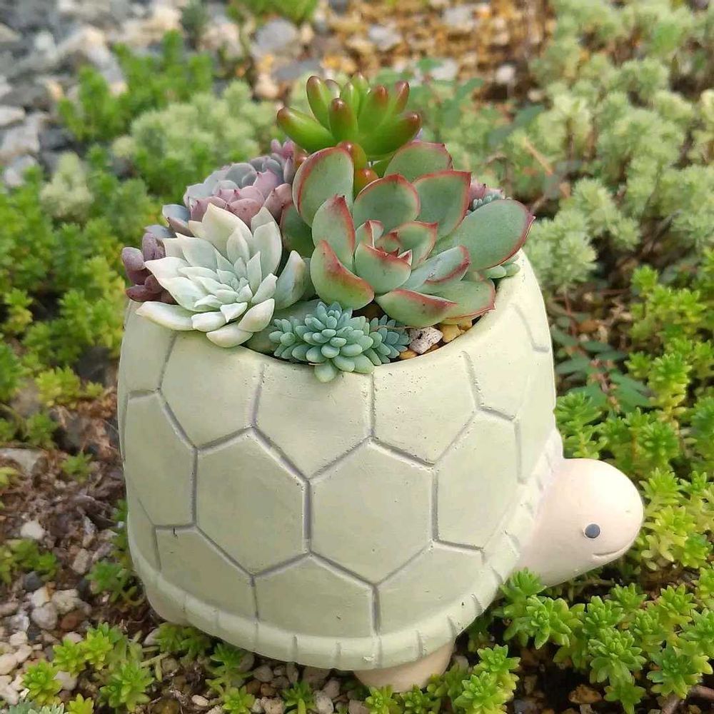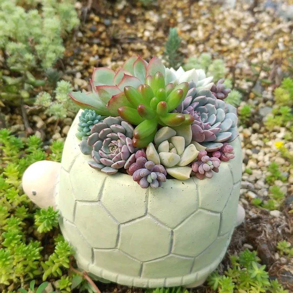 先日買って来たゾウガメさんに寄せ植えしました🎶