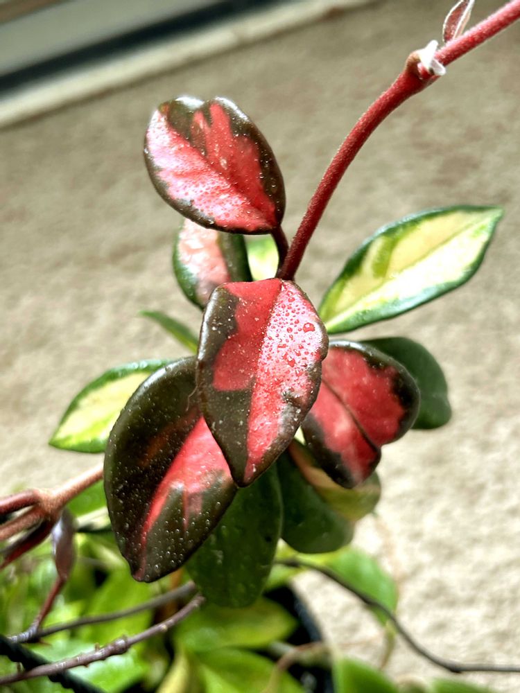 こんにちはハイジです ホヤカルノーサ赤くなる原因は新芽を強い日射しから保護する為にアントシアニンが形成されるようですよ😊🌿🪿💨💨💨💨👋👋👋