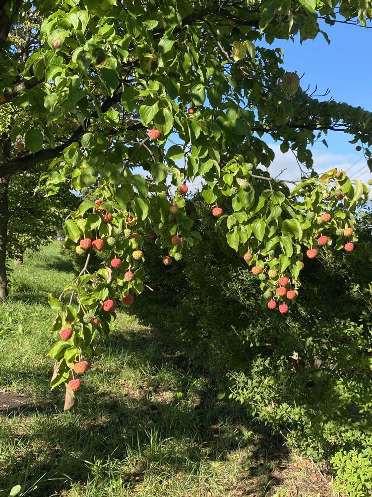 んだ、ヤマボウシの実、食べられるんだよね😃