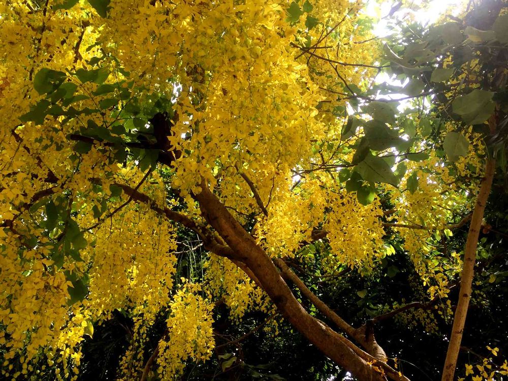 タイの国花でもある鮮やかな黄色いゴールデンシャワー。藤の様に房状の花が垂れ下がります。