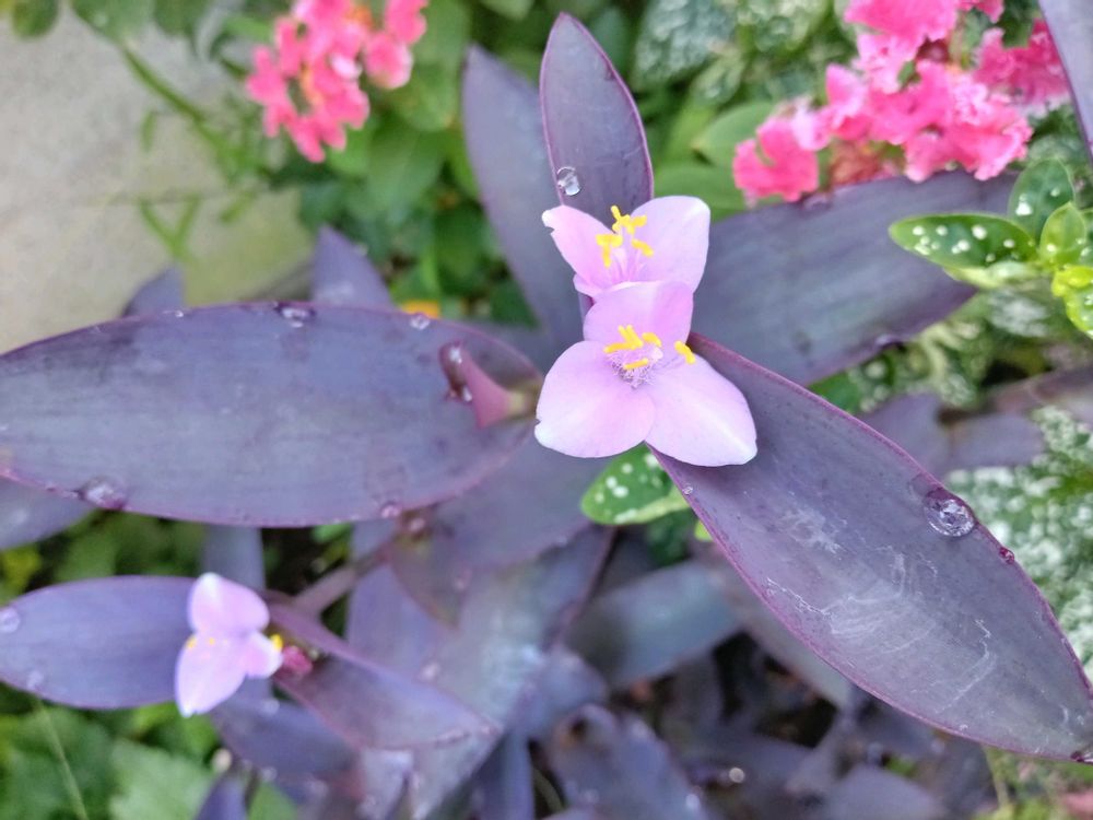 ムラサキゴテン、群生してるのみると、可愛いですよ。ムラサキ💜に、🩷のお花が目立ちます。