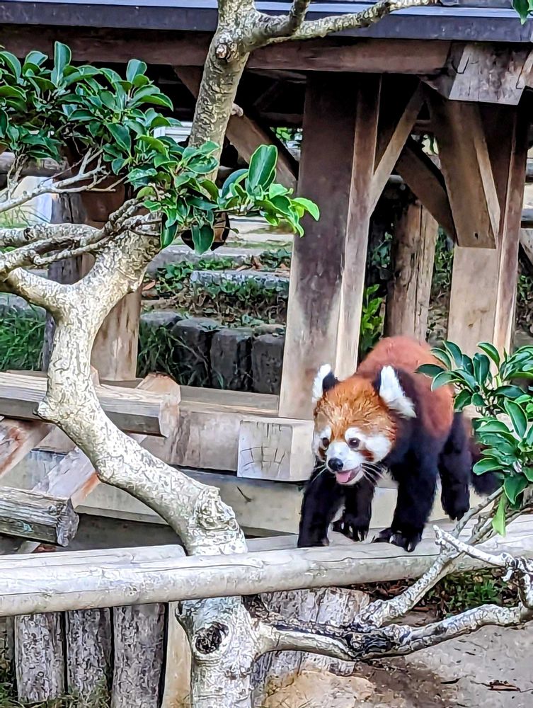 屋内は冷房が効いてのんびりしているレッサーパンダもいましたが 外のコは暑かったのに舌を出しながらも歩き回ってましたね😄🦝