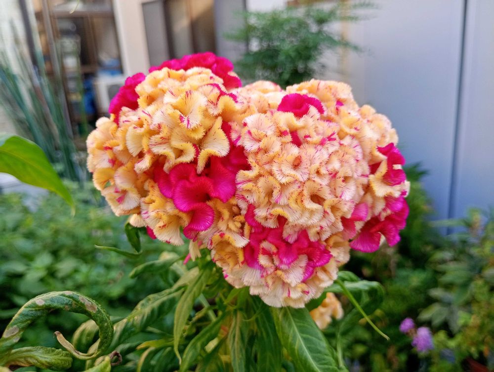 ツートンカラーのケイトウ、すごく綺麗です。😃