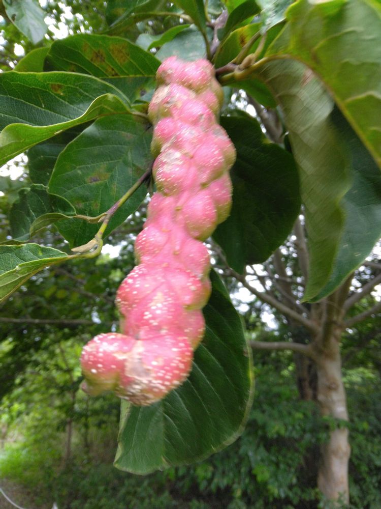 *これは確か白い花が咲いていた記憶が🤔、実になるとわからない。Gで検索すると、コブシの実!🤗