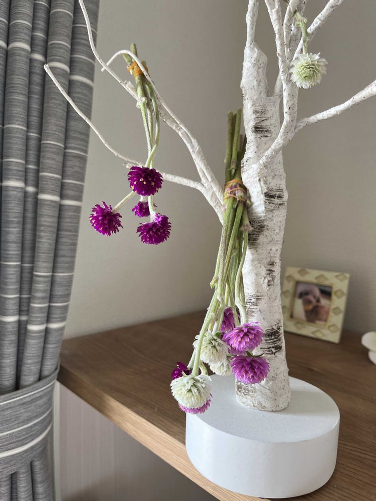 これから枝分かれしてモリモリになるかなぁ😄ドライフラワーにしてる木も可愛いね😁白樺?