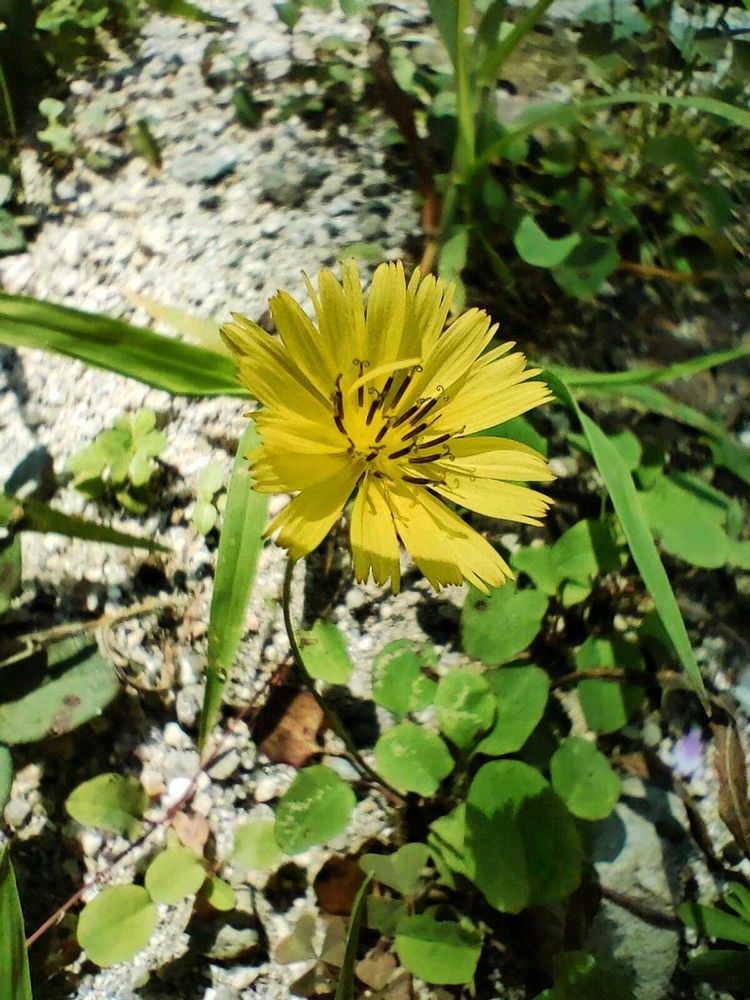 場所は日当たりの良い、固い地面であり、イワニガナの別名がついた理由となるような所(庭)で見つけました。