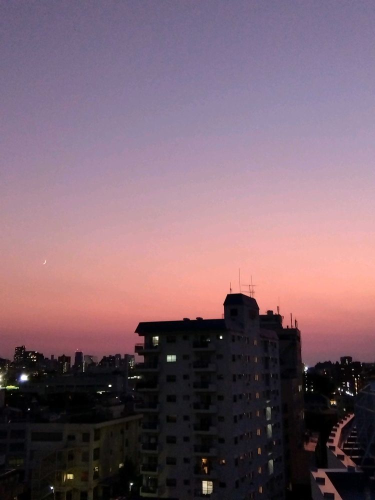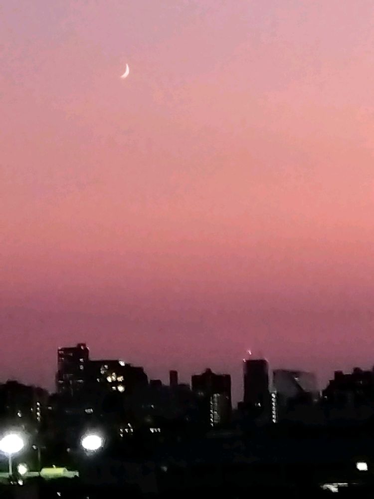 夢実さんの紫の花,夕焼け,三日月の投稿画像