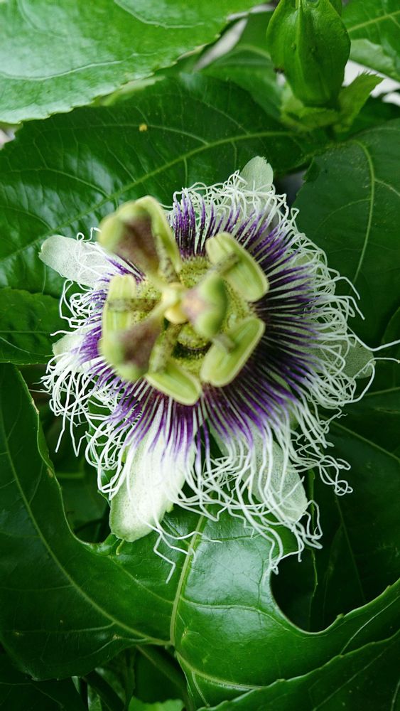 パッションフルーツの花が綺麗に咲いています。