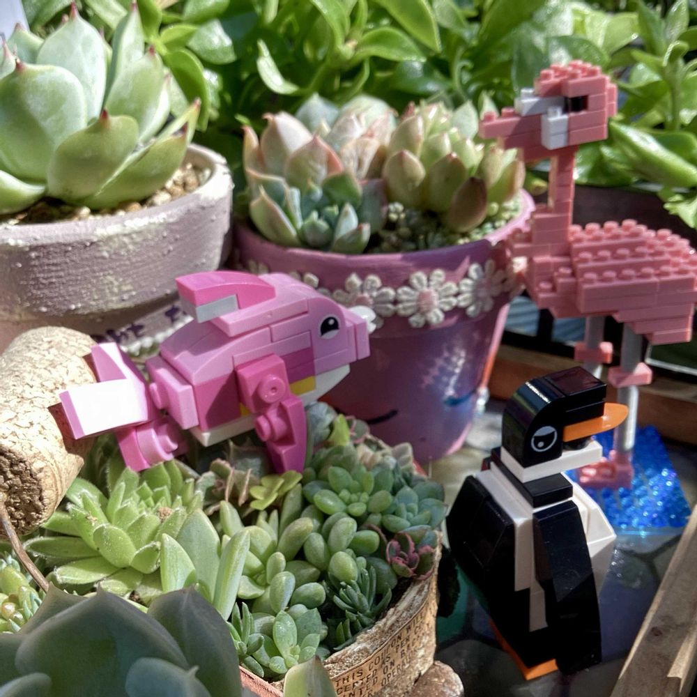 フラミンゴ🦩は足が細くて、何回もやり直ししました😅ペンギン🐧は、セリアで、ブロックパーツがしっかりしてるので簡単にできますね☺️