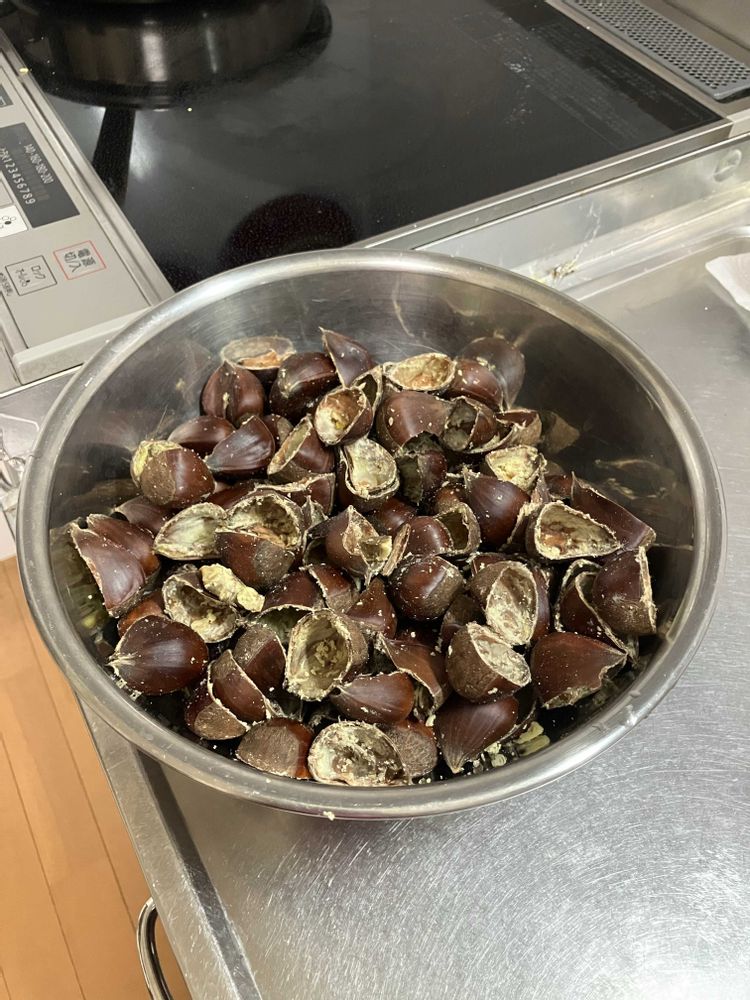 今年は1キロくらいを 必死で 栗の中身取りしたら 😖💥中指ばね指になったわ😮💨