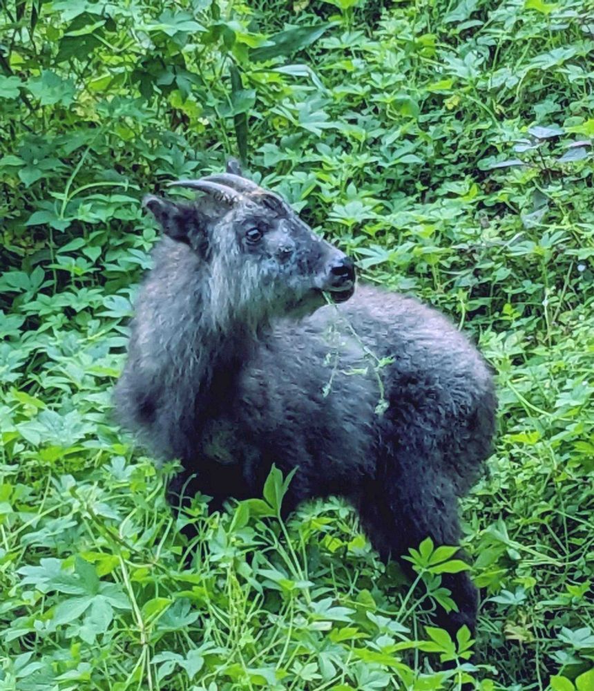 ニホンカモシカは大きいけど大人しくて逃げないし無心で葉っぱを食べてました🌿😆🌿