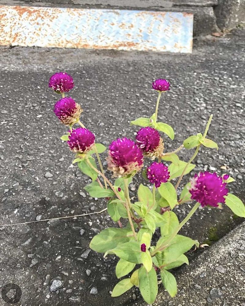 土も無いようなアスファルトの隙間なのに、鉢植えしてる千日紅よりお花が詰まって可愛いのは何故〜🤭