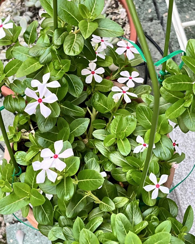 ひと月前に株元8㌢くらいに強剪定してしまった日々草の夏花火🎆