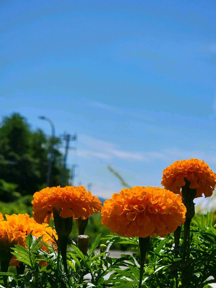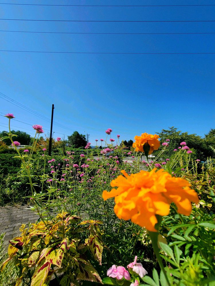 同じ花壇にマリーゴールド(アメリカマリーゴールドかな🤔こぼれ種蒔き)