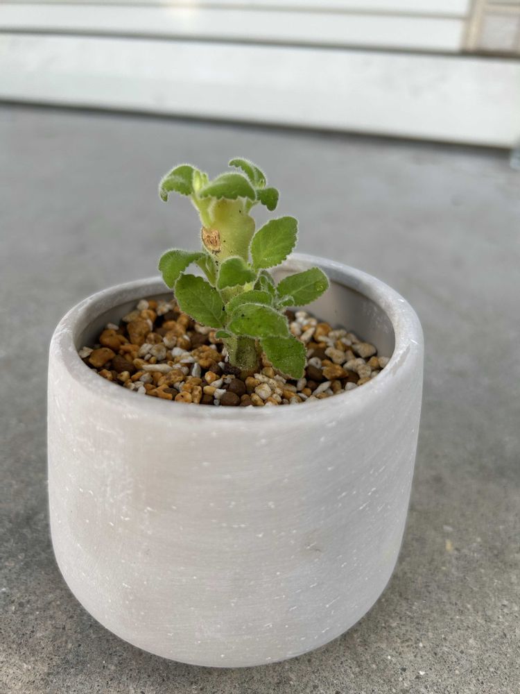 4枚目のシンニンギアが花が終わったので大幅に剪定して3枚目のように。根っこは3センチくらいの塊根になってました。