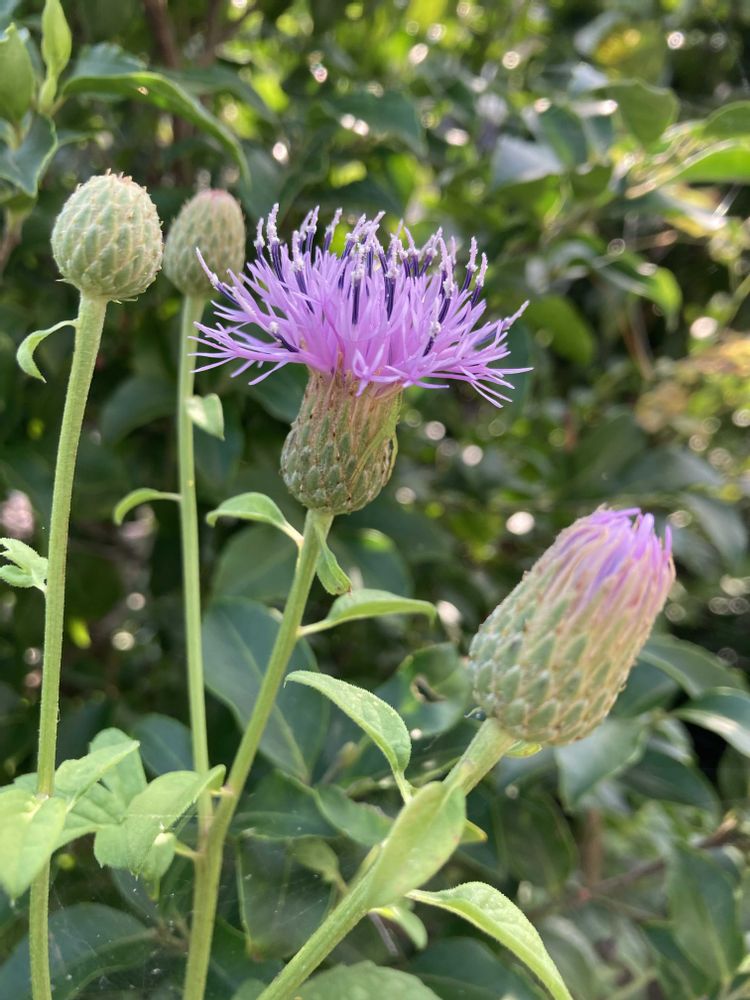 タムラソウです。冬に種を蒔いて2回目の夏に咲きました。蕾がたくさんありますが一つずつしか咲いていません。