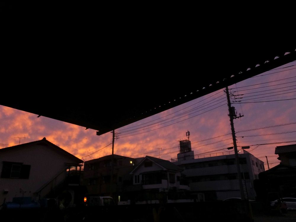 仕事中窓が染まるのに