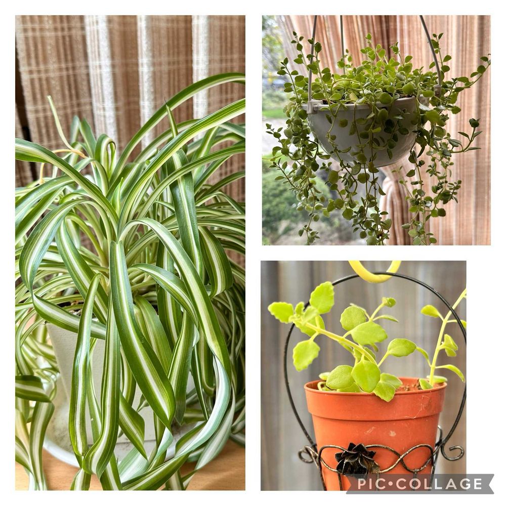 ①花友さんから頂いたオリヅルランボニー⬅️とプレクトランサスプロストラーツス➡️