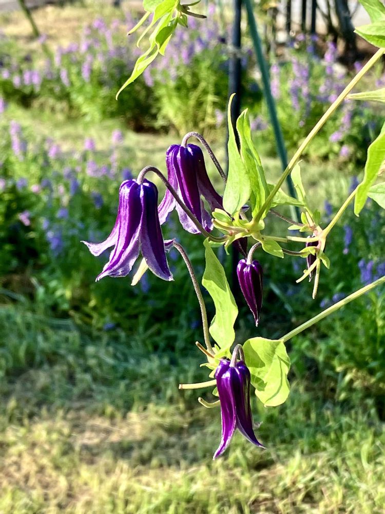 バラ園のバラ達が休み中🌹1.クレマチス🏺3、初雪草❄️4、柳花笠(ヤナギハナガサ)、(三尺バーベナとも呼ばれます)🌿