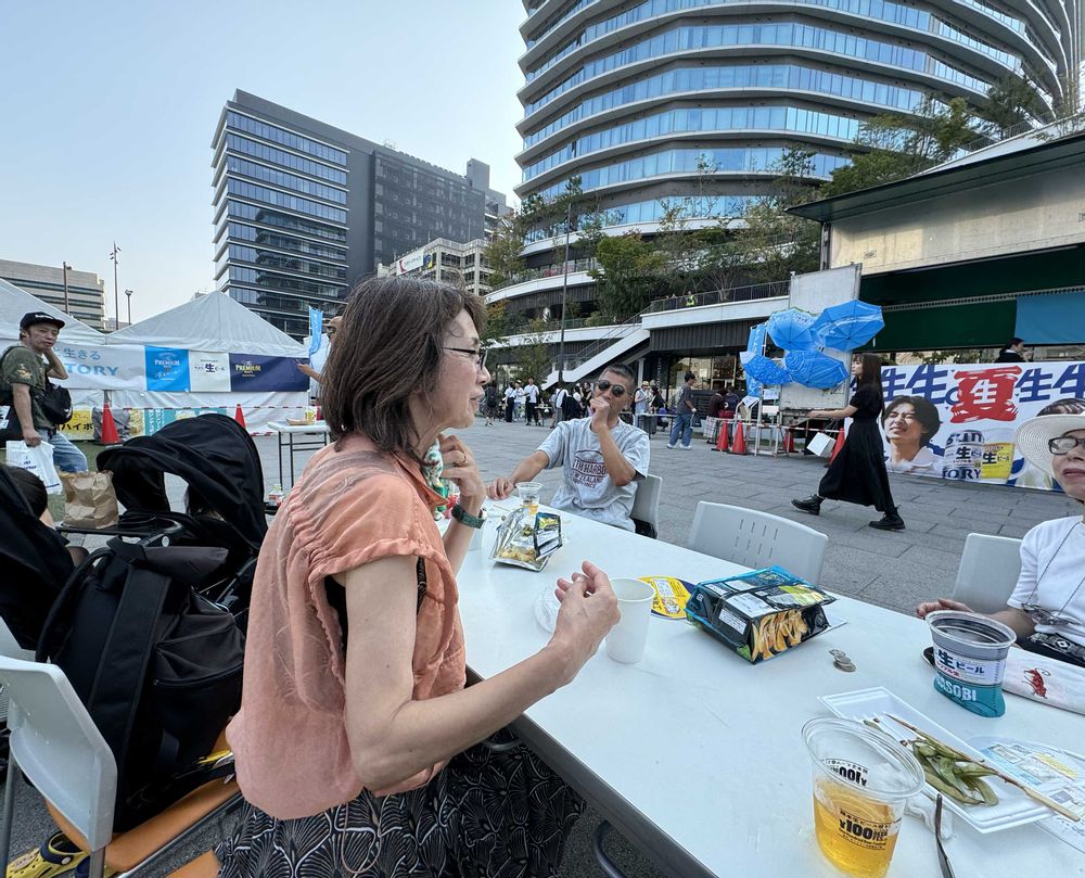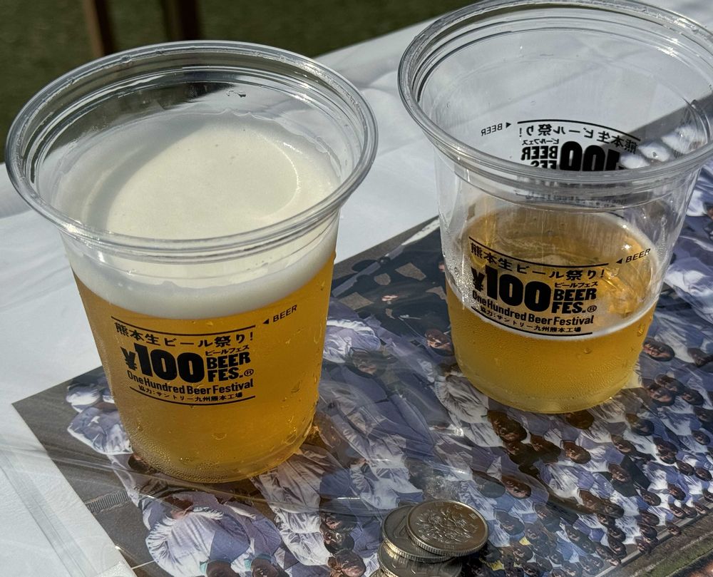 プレゼンスでサクラマチ広場で生ビールが一杯100円だったので夫婦で飲みに行って来ました。