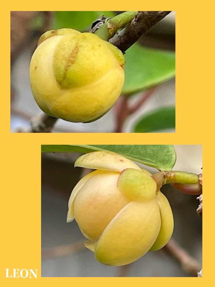 これから真ん中の赤いのが、つぶつぶのまぁるい真っ赤な実になるんだよ🔴🔴🔴