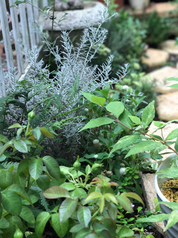 シルバーリーフは春に藤色の可愛いいお花が咲く、、名前がまたしても思い出せないわ。困ったものです😂