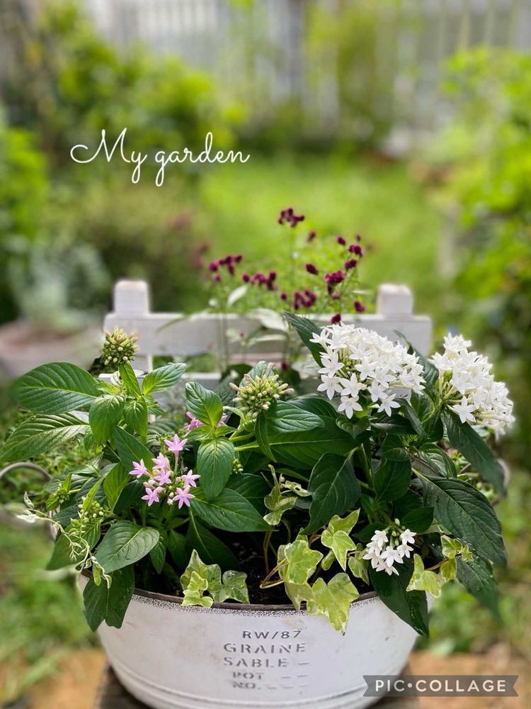 ①ペンタス、千日小坊、カロライナジャスミン、ヘデラの寄せ植え♡
