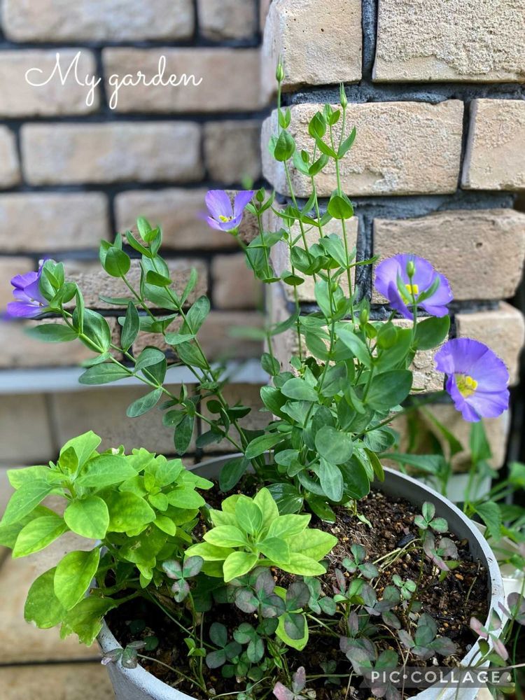 ⓷ペチュニア ホイップマカロンが1つ枯れてしまったので、そこにトルコ桔梗を植えました💜🍃