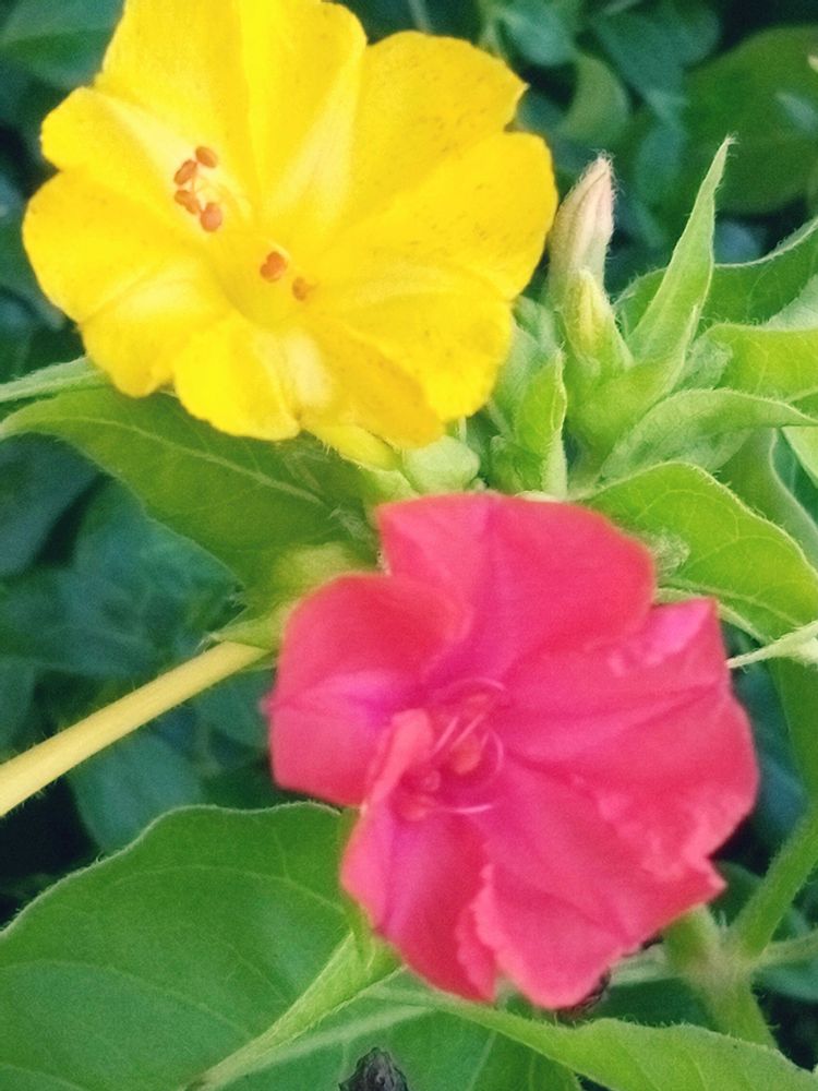 ①ひと枝から 咲き分けているオシロイバナ 可愛いです😊
