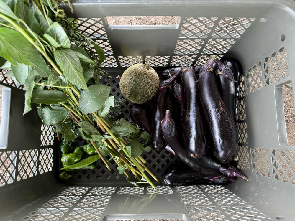 その他の収穫はウリハムシの猛攻で葉がレースになりながらもギリギリ育ってくれたメロンの回収と