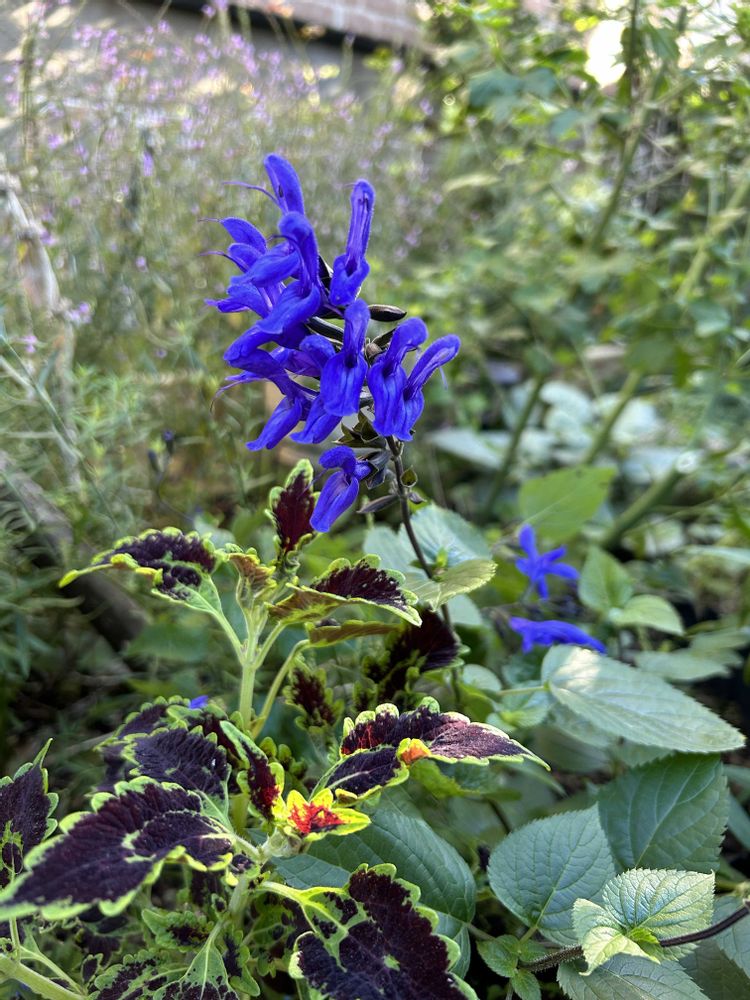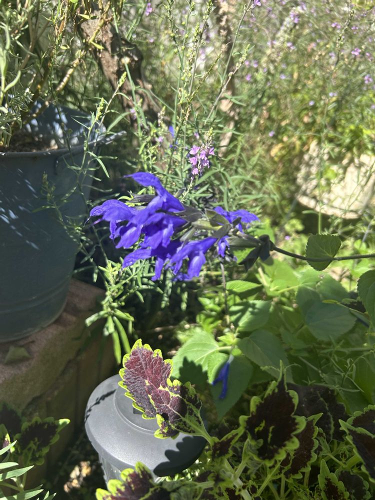 初めて植えたメドーセージ🌸アリウム ギガンチウムが終わって掘り上げたとこに植えたんですがを、けっこう下の方で咲いてて目立たない💦色はすごく綺麗なんですがね。もっと高く咲く予定だったのにー💦