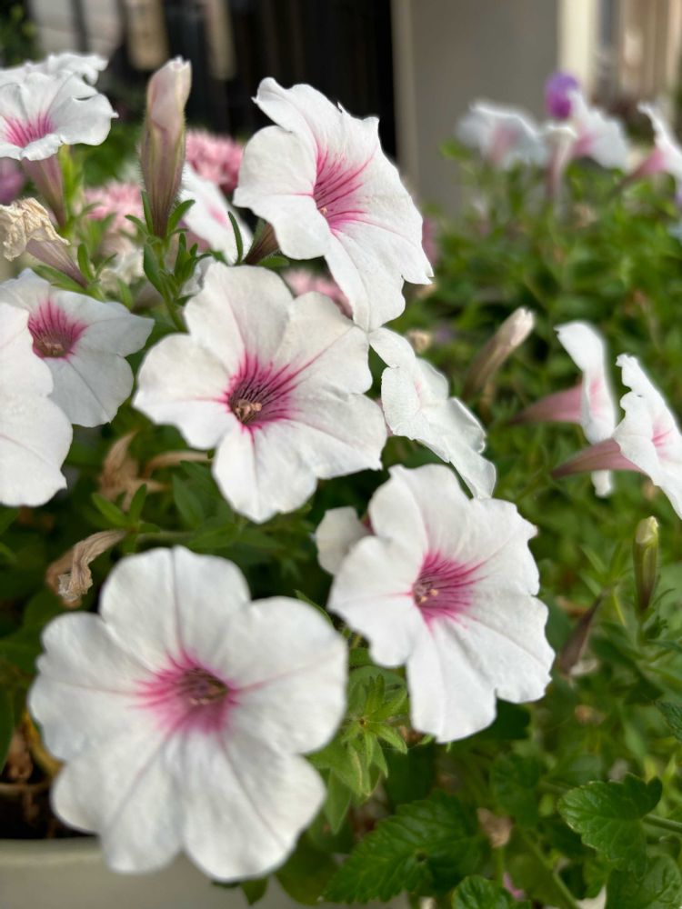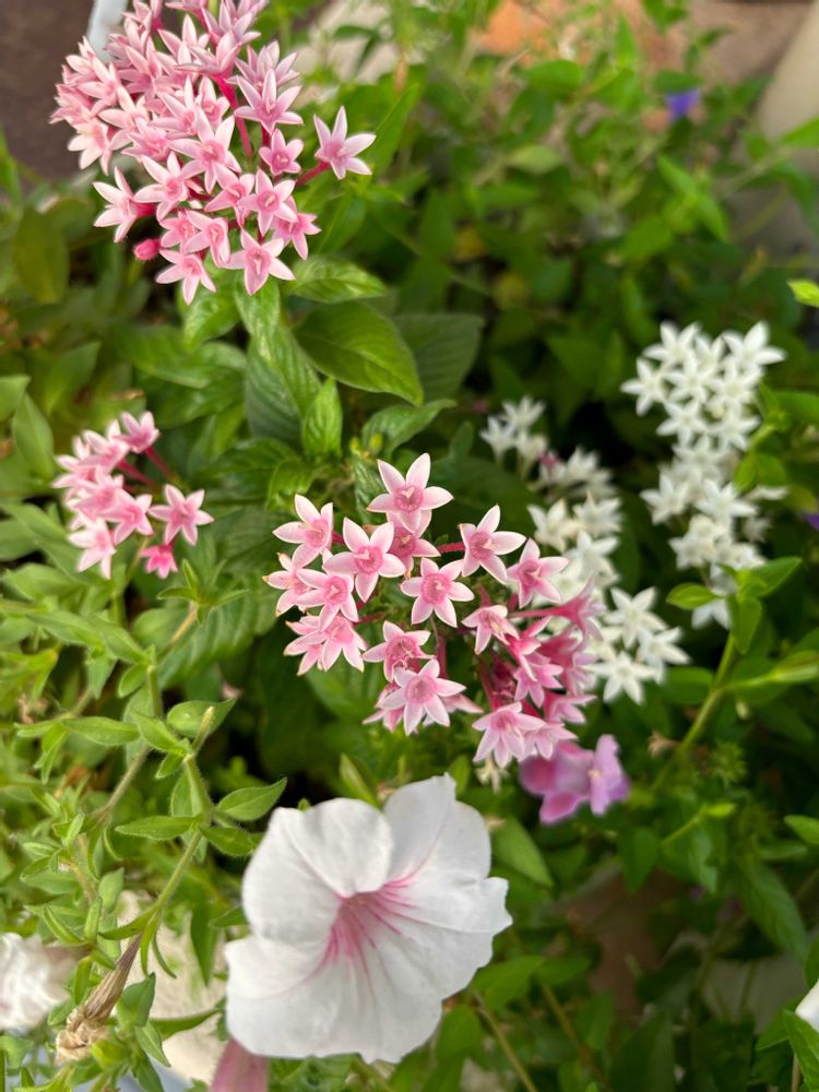 眼科のサフィニアとペンタス 優しい色で大好き🩷🤍🩷🤍😍