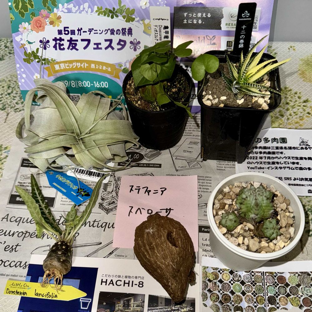会場は広くて多肉植物、塊根植物、斑入りの観葉植物、アガベ、野菜苗、土や園芸用品など見どころ満載で楽しかった😆