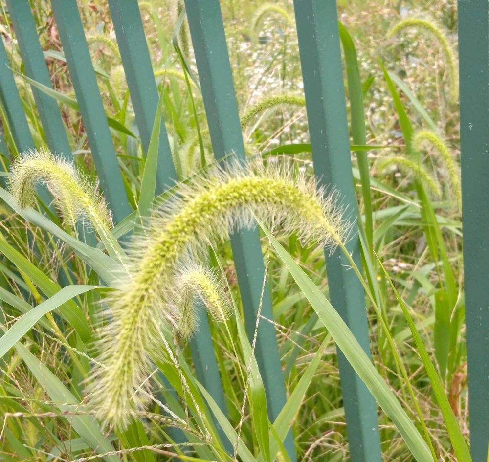 線路脇の空き地に生えているアキノエノコログサの群れ。