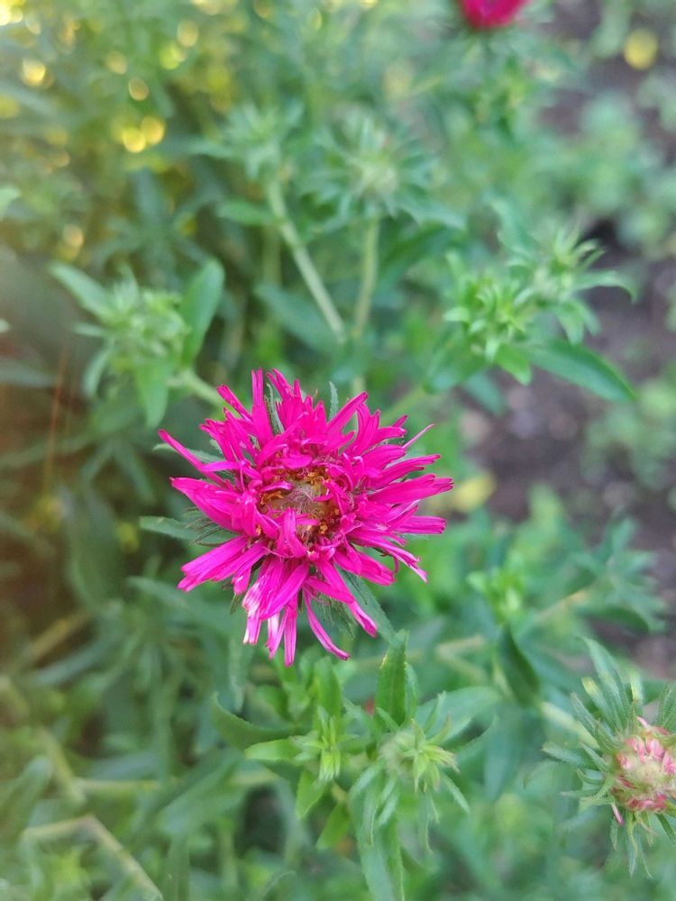 アスター1個、2個と咲いてきました 濃いめのピンクが可愛いですよ*.*⸜(*ˊᗜˋ*)⸝*.*