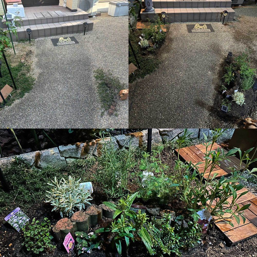 玄関歩道の両脇に芝桜を植えていましたが、老朽化が進行。嫁さんと思い切って穴掘り、宿根草を思うがままに植え付け。欲張りな寄せ植えをしちゃった、どうなることやら。。。