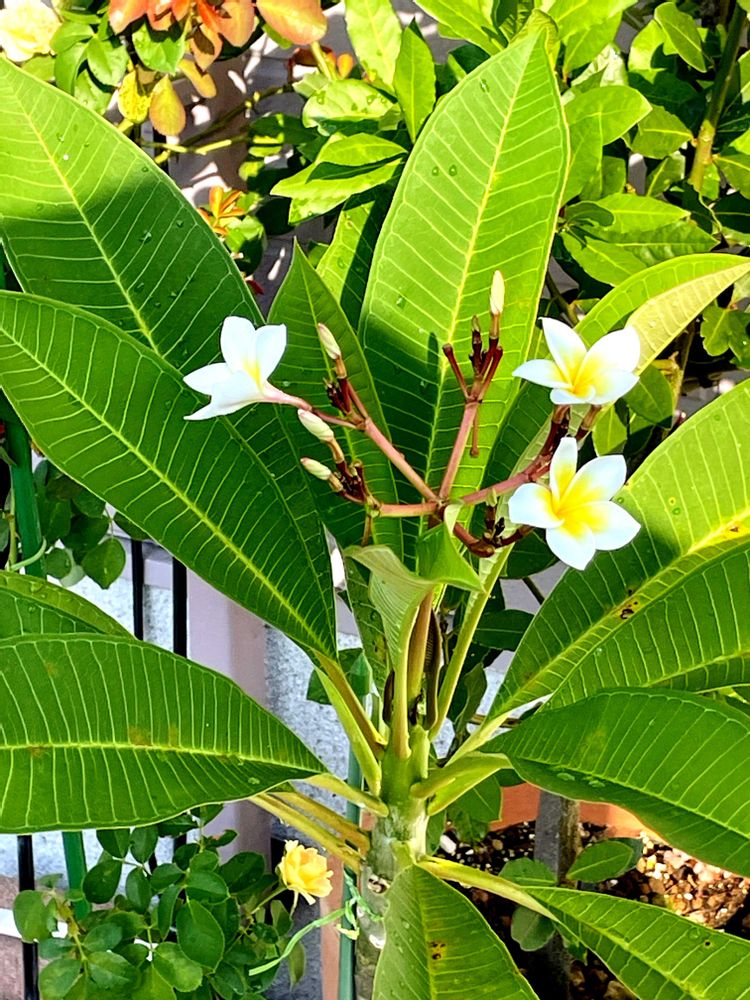 プルメリア,昨日の散歩道,通り道の美容院の玄関前のお花の投稿画像