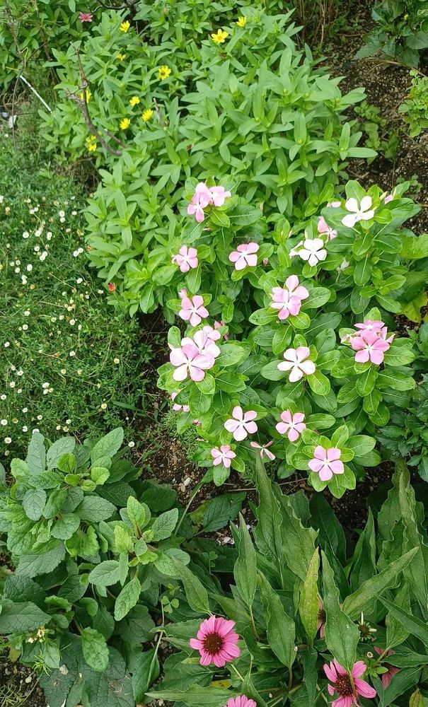 百日草がのぞいてたり、日々草も 夏花満載で楽しいです🎶✨(˶ ̇ ̵ ̇˶ )゚♔*°。ステキ*☆
