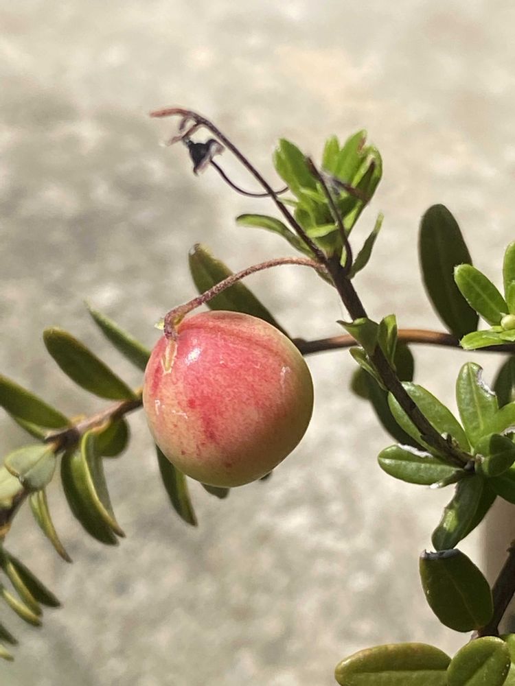 ツルコケモモは、伊那の叔父貴の家からやって来ました。以前は、大きな鉢で育てていたんですが、元気がなくなって、今は小さな鉢で育てています。今年は、4・5粒なってます😊