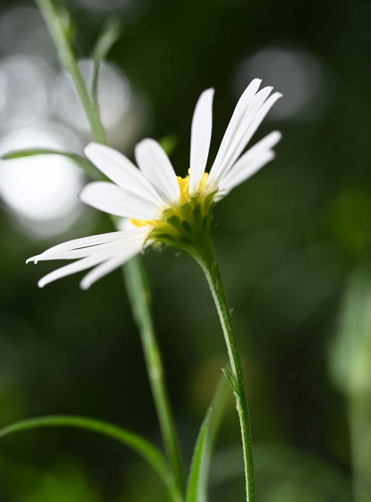 舌状花はほぼ真っ白でヨメナに似るが、色味はより淡く やや青紫色を帯びる。