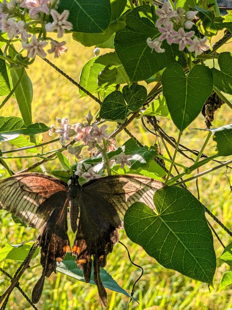 花粉運搬者なのか、クロアゲハの仲間が羽を広げていた(2枚目)
