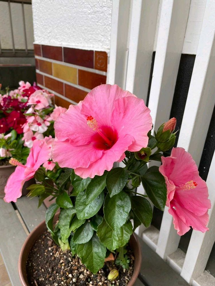 ご友人のハイビスカスさんは可愛いピンク色なんですね🌺🩷こちらも明るいですね🤗お花が大きいくて、立派ですね✨