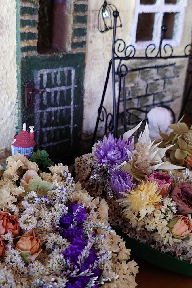 玄関の中には昨晩仕上げたフラワーアレンジメントにちっちゃなムーミンハウスを忍ばせて🤗