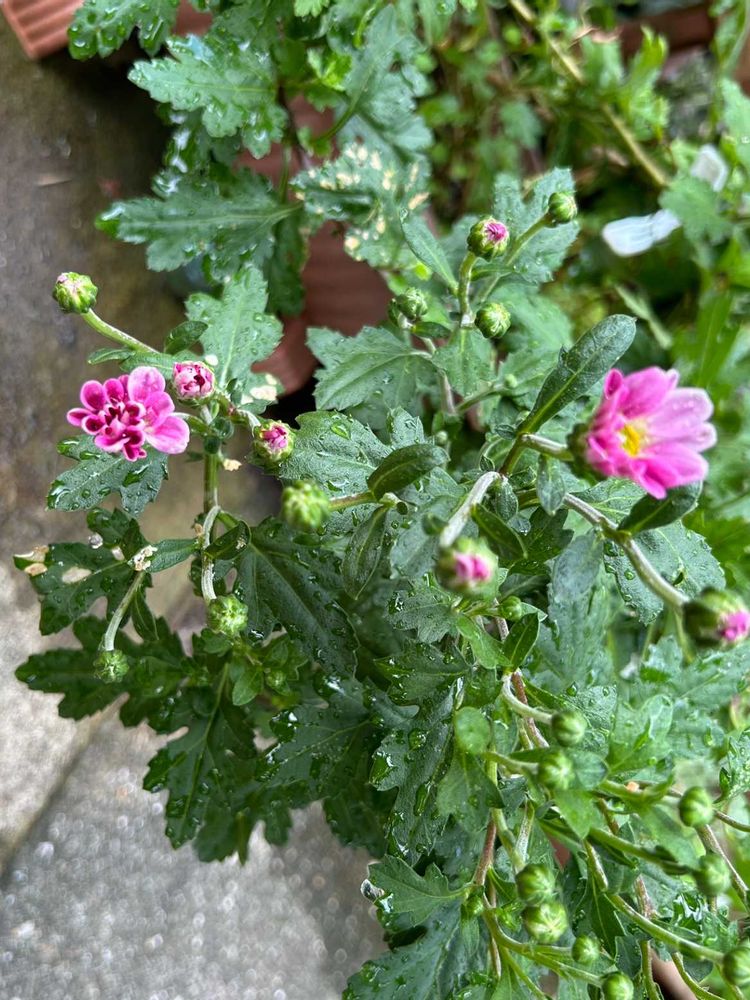 お墓用に買った菊の花でした。挿し木にして育った子です。今年も可愛いピンクで輝いてます🩷