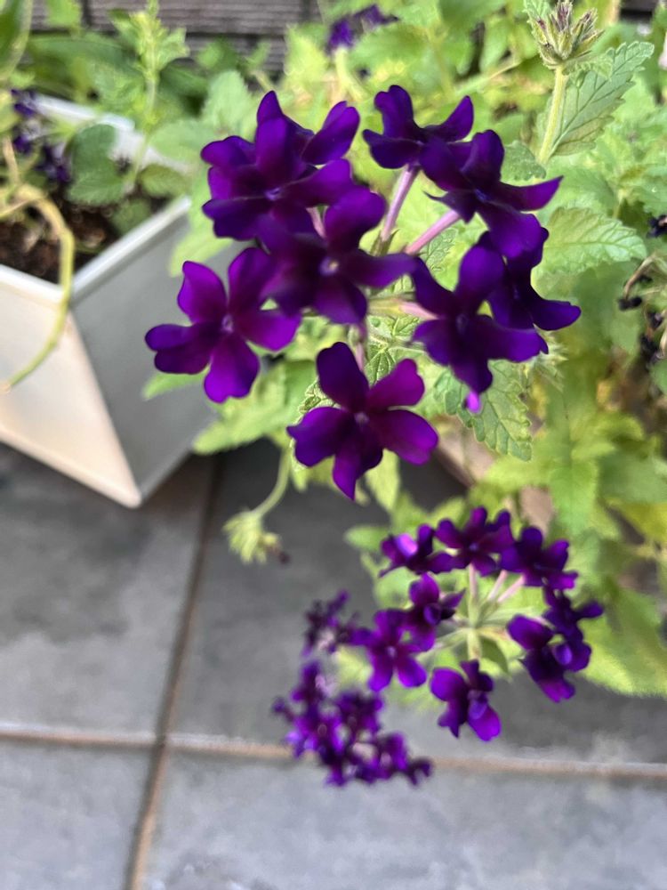 パープルバーベナさんは、何かブランド名が付いていたので、お花もしっかり咲き続けています。こんなに深いパープルってあまり見ないですよね🥰💜