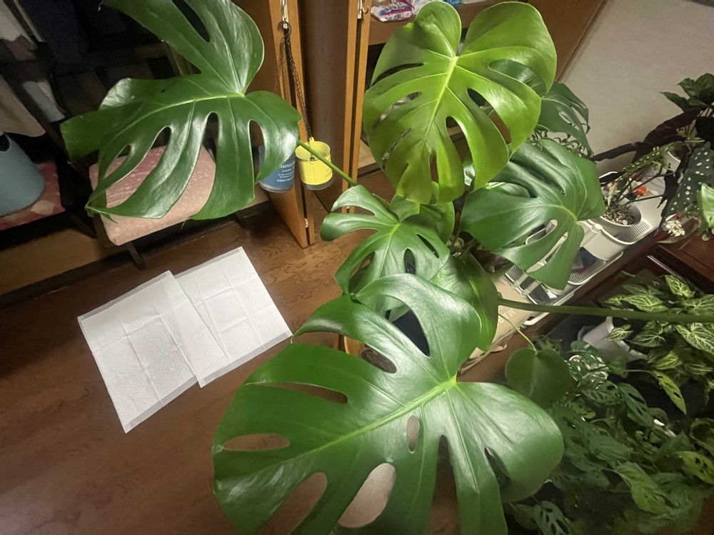 実家のモンステラ🌿根っ子と葉の処理後、元気そうな感じ(╹◡╹)♡かわいい💕自分の家にも欲しい‼️