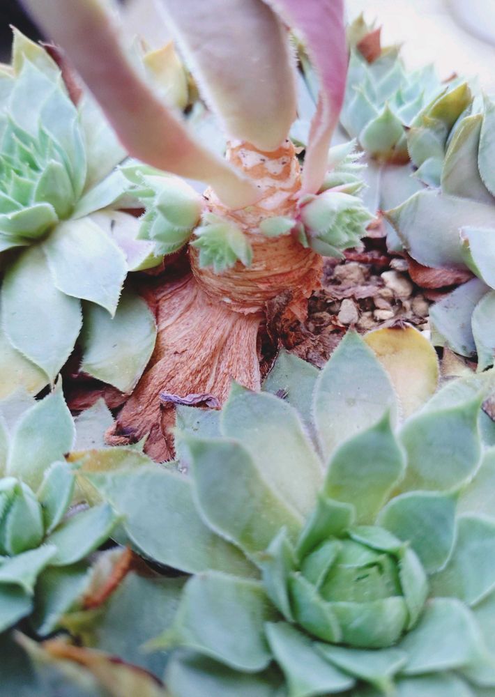 先日センペルビウムの花芽が上がってきて花を咲かせた後花の所だけカットして放置してたら沢山新芽が出てきました!