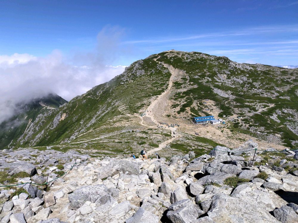 中岳から木曽駒ケ岳へは中岳を一度少し下ってそれからまた登ります🚶