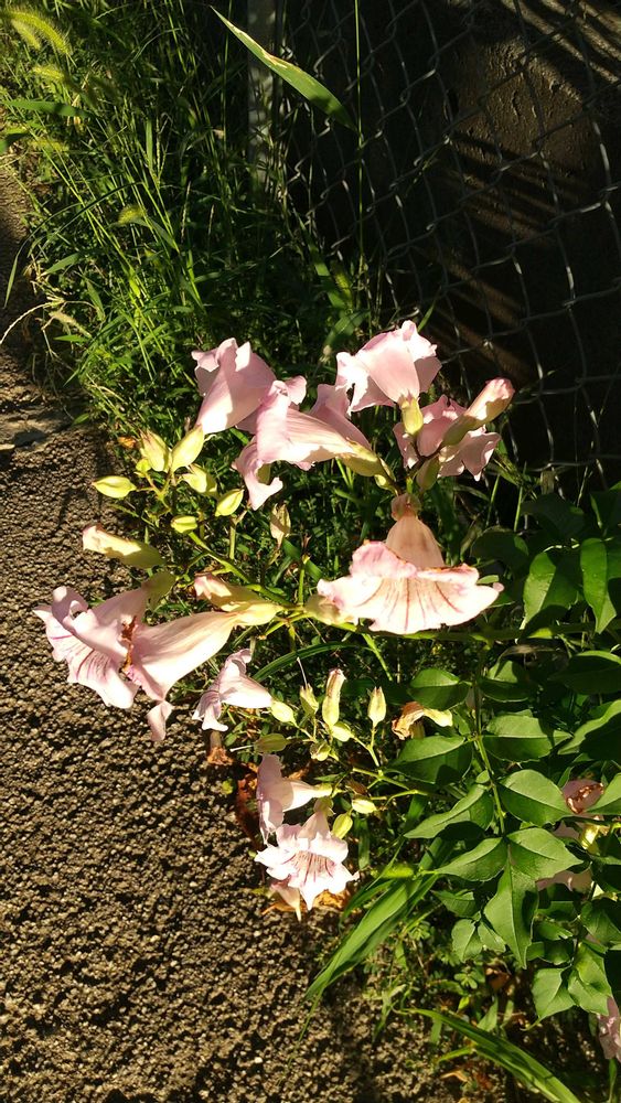 何年も歩いている🐕️散歩コースの一つの寄せ植え散歩道に、少し前から初めて見るピンクの花を見つけました。
