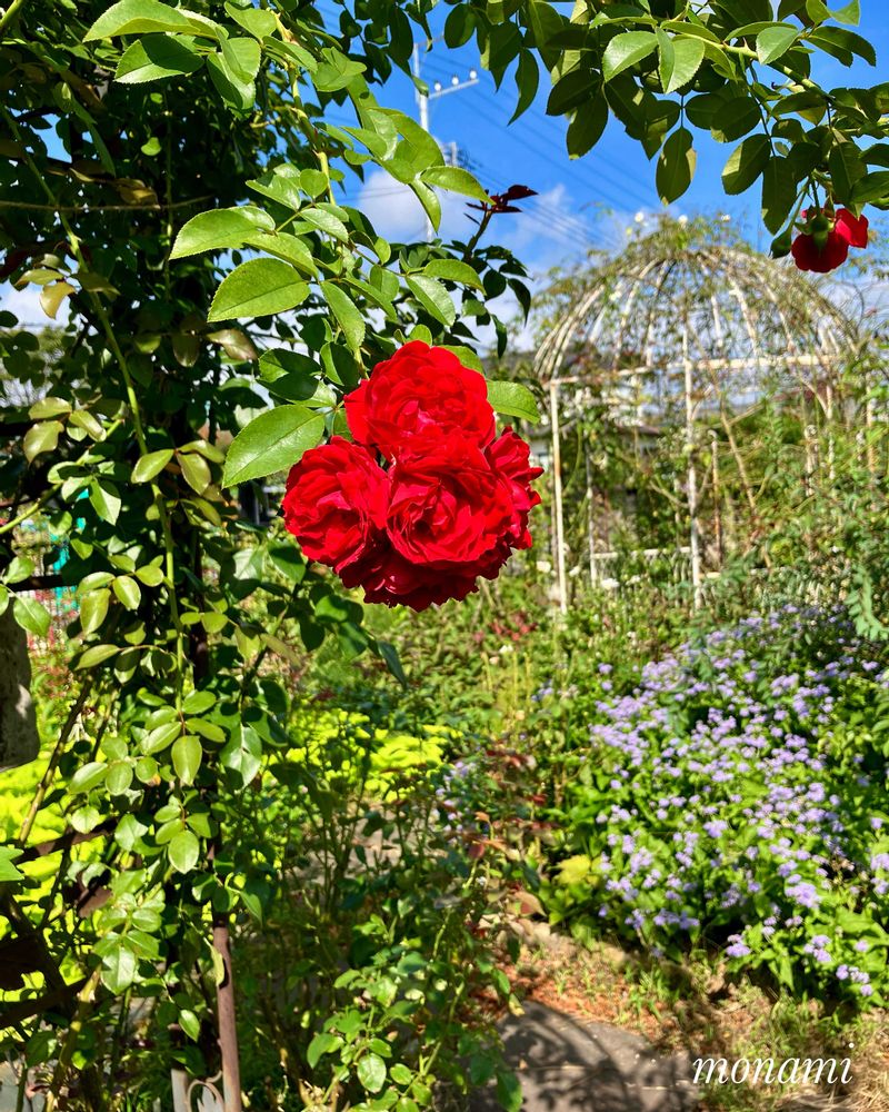 秋明菊に押されてるバラはベンウェザースタッフや😂チッチャ🤏